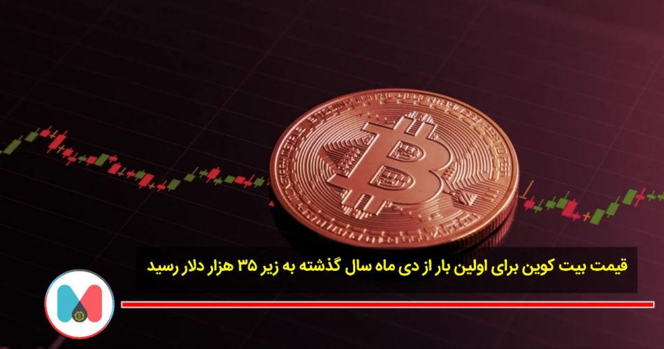 بهای بیت کوین پس از افتی بیش از ۴ درصدی در ۲۴ ساعت گذشته، برای نخستین بار از دی ماه سال گذشته تاکنون به سطح زیر ۳۵,۰۰۰ دلار سقوط کرد. قیمت این ارز دیجیتال نسبت به هفته گذشته نیز تقریباً ۹ درصد کاهش یافته و ارزش بازار آن به ۶۵۸ میلیارد دلار رسیده است. گفتنی است که ارزش بازار بیت کوین تا ۲۸ مارس (۸ فروردین)، بیش از ۹۰۰ میلیارد دلار بوده است. فشار فروش این ارز دیجیتال زمانی افزایش یافت که فدرال رزرو آمریکا اعلام کرد نرخ بهره در این کشور را افزایش میدهد.