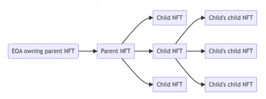 ERC-۶۰۵۹ یک مفهوم کاربردی را معرفی می‌کند که در آن یک NFT، مالک و سرپرست NFT دیگر است و برای این مالکیت نیازی به حساب با مالکیت خارجی (EOA) یا قرارداد‌های هوشمند ندارد. ERC-6059 استاندارد پایه توکن‌های غیرمثلی را گسترش می‌دهد تا امکان ایجاد رابطه والد-فرزند را بین NFT‌ها فراهم کند. به عبارت ساده‌تر، یک NFT می‌تواند توکن‌های غیرمثلی دیگر را مدیریت کند و سلسله مراتبی از توکن‌ها را ایجاد کند.